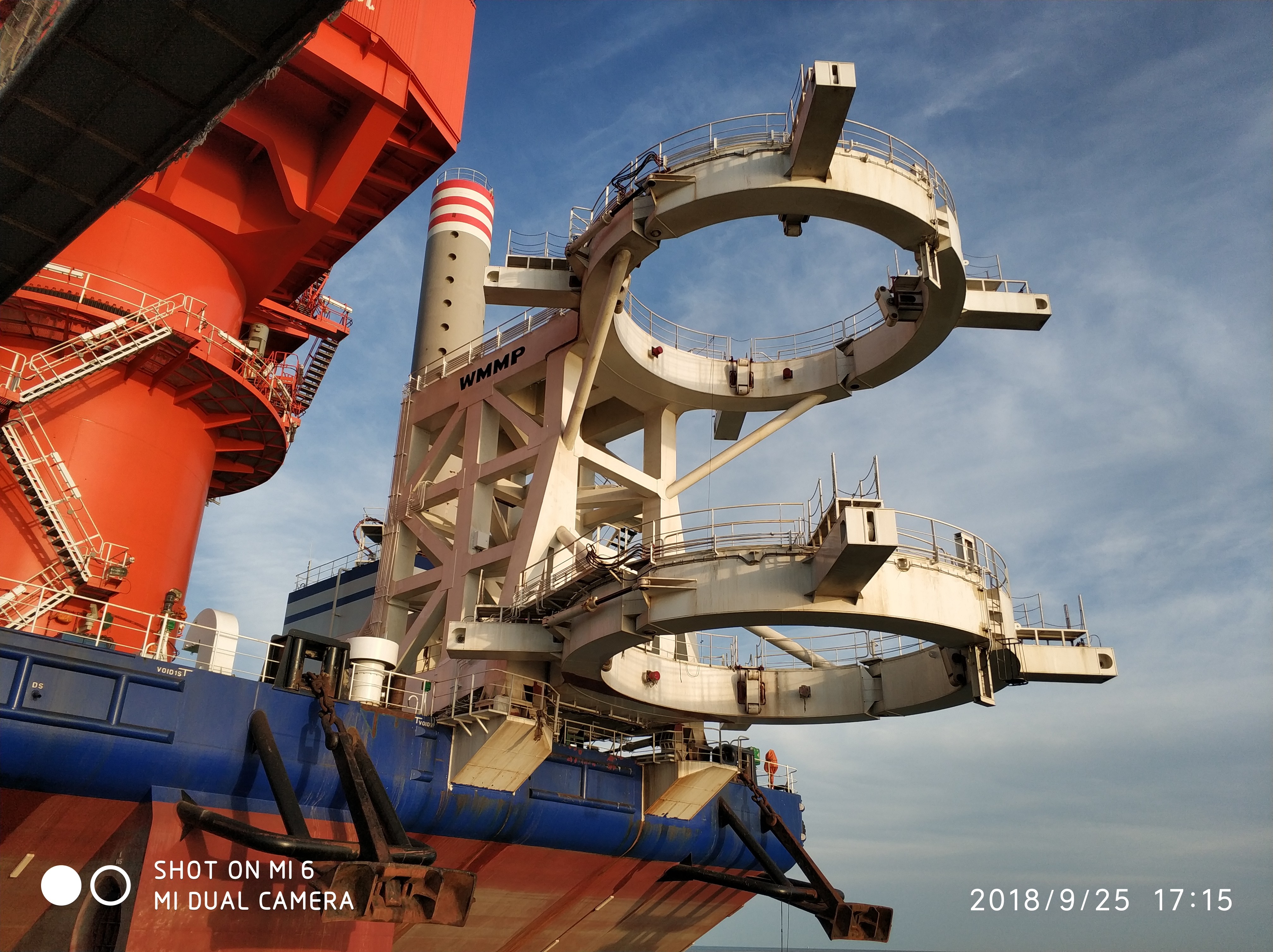 產品特點:伸縮臂式抱樁結構,雙層抱樁,整體可回縮至船體內,可適應不同樁徑垂直度調整,可手動調整和自動調整垂直度。 主要應用范圍:風電安裝平臺、打樁船