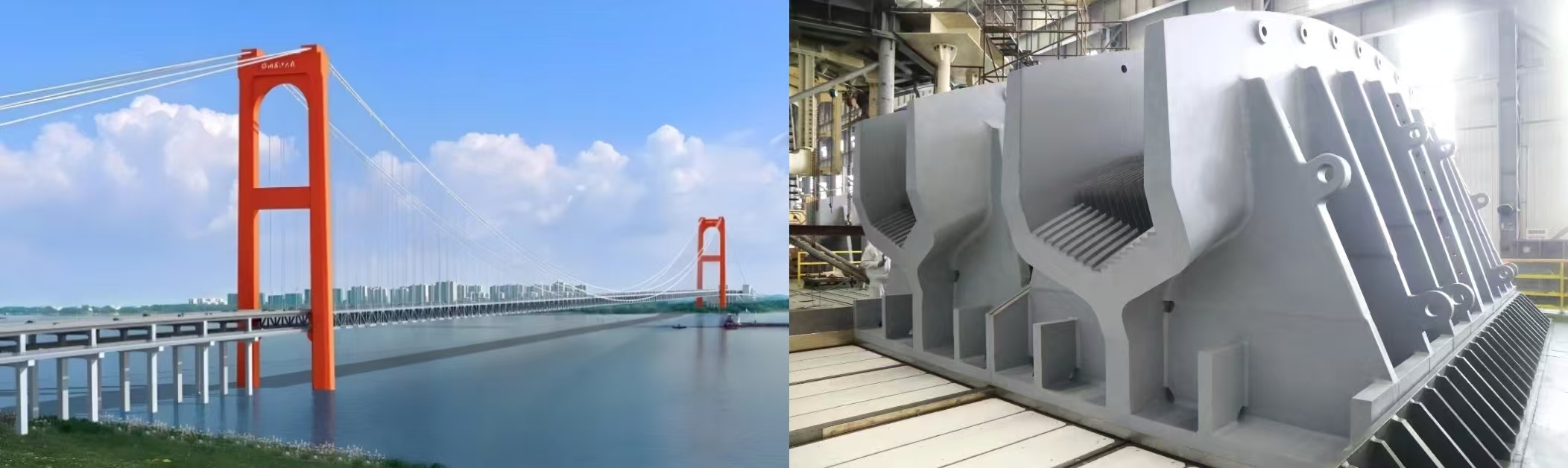 新興產(chǎn)業(yè)之懸索橋索鞍索夾:天塹通信息賦能,品質(zhì)建設(shè)中國(guó)橋。武漢船機(jī)公司是國(guó)內(nèi)建造大跨度懸索橋索鞍索夾最具實(shí)力的企業(yè)之一。公司以加快新一代信息技術(shù)與制造業(yè)深度融合為主線,發(fā)揮重型起吊設(shè)備和大型數(shù)控落地鏜銑床等設(shè)備優(yōu)勢(shì),大力推進(jìn)懸索橋索鞍索夾綠色、智能制造技術(shù)應(yīng)用和發(fā)展進(jìn)步。2024年以來(lái),公司相繼承接了張靖皋大橋、李埠大橋、哈爾濱松花江特大橋、廣東獅子洋大橋等多個(gè)項(xiàng)目的索鞍索夾,為助力打造國(guó)家級(jí)綠色示范工程和國(guó)家品質(zhì)工程,打造國(guó)民經(jīng)濟(jì)建設(shè)和我國(guó)橋梁事業(yè)的健康發(fā)展進(jìn)步貢獻(xiàn)了力量。