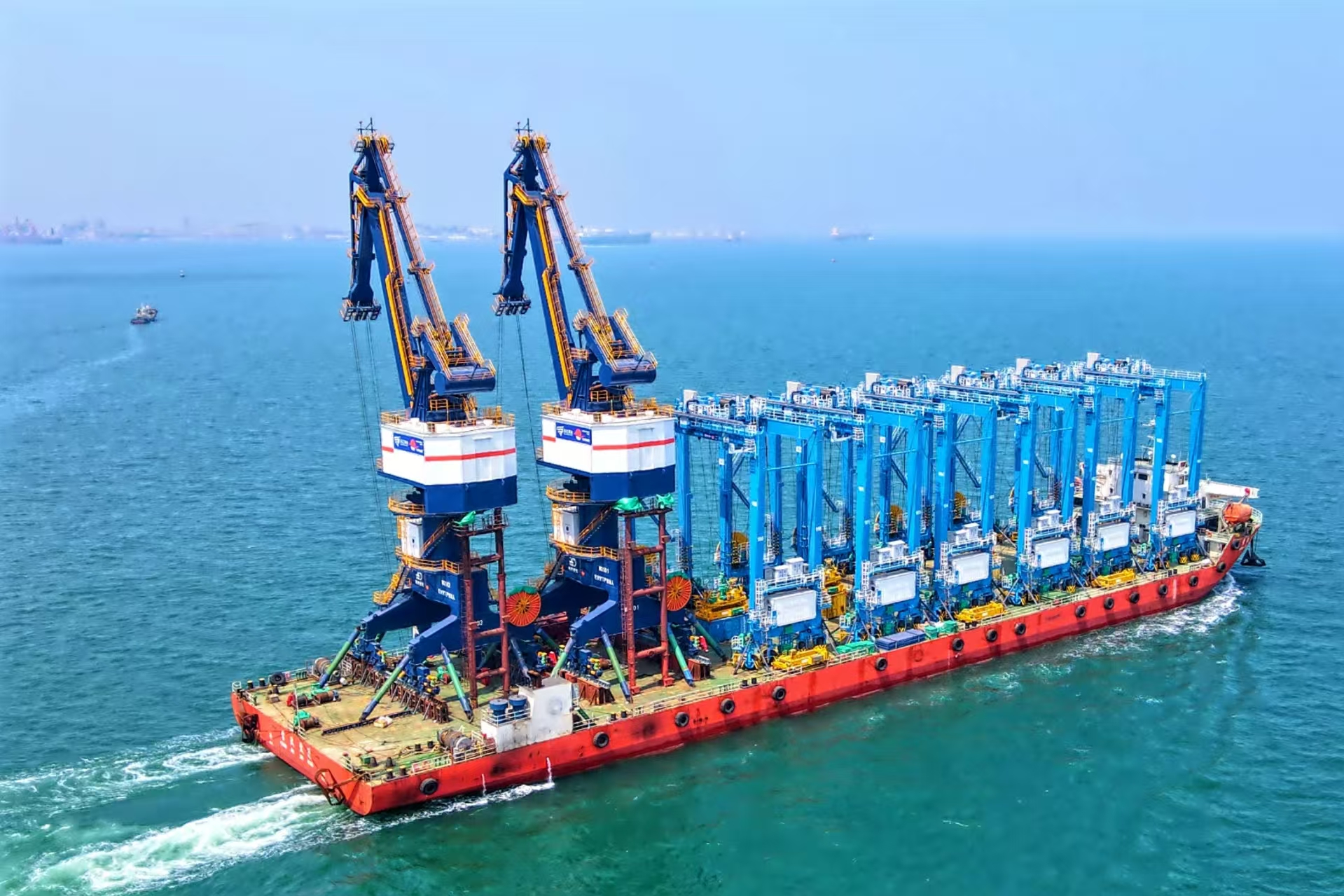 該批門機(jī)配有吊鉤、抓斗、集裝箱吊具,用于件雜貨作業(yè)以及集裝箱、抓斗作業(yè),可滿足5萬(wàn)噸級(jí)貨船的裝卸需求,將與前期武漢船機(jī)海西重機(jī)為其打造的批量岸橋協(xié)同作業(yè)。