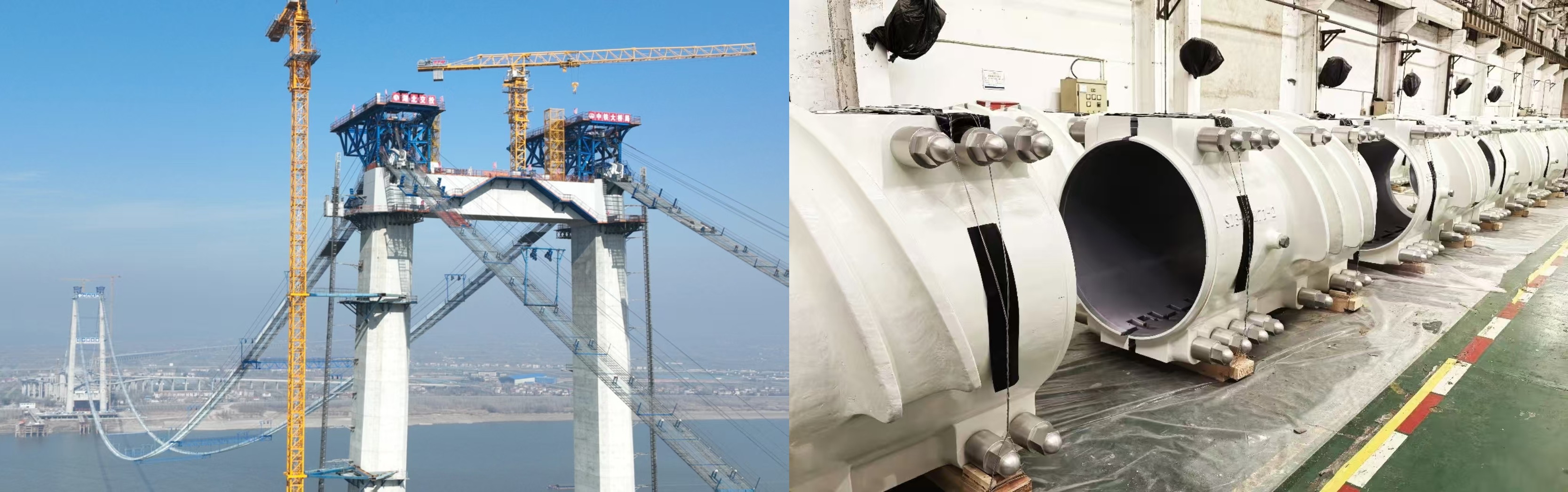 雙柳長江大橋是湖北省第40座,武漢市第12座長江大橋。大橋全長1630米,是雙塔單跨簡支梁懸索橋,主跨1430m,北岸位于武漢市新洲區(qū),南岸位于鄂州市華容區(qū),是武漢都市圈和“武鄂黃黃”一體化發(fā)展的重要交通支撐。武漢船機(jī)公司共承制雙柳長江大橋4套主鞍、4套散鞍、288套索夾。其中索鞍于2024年9月全部發(fā)往建橋現(xiàn)場。