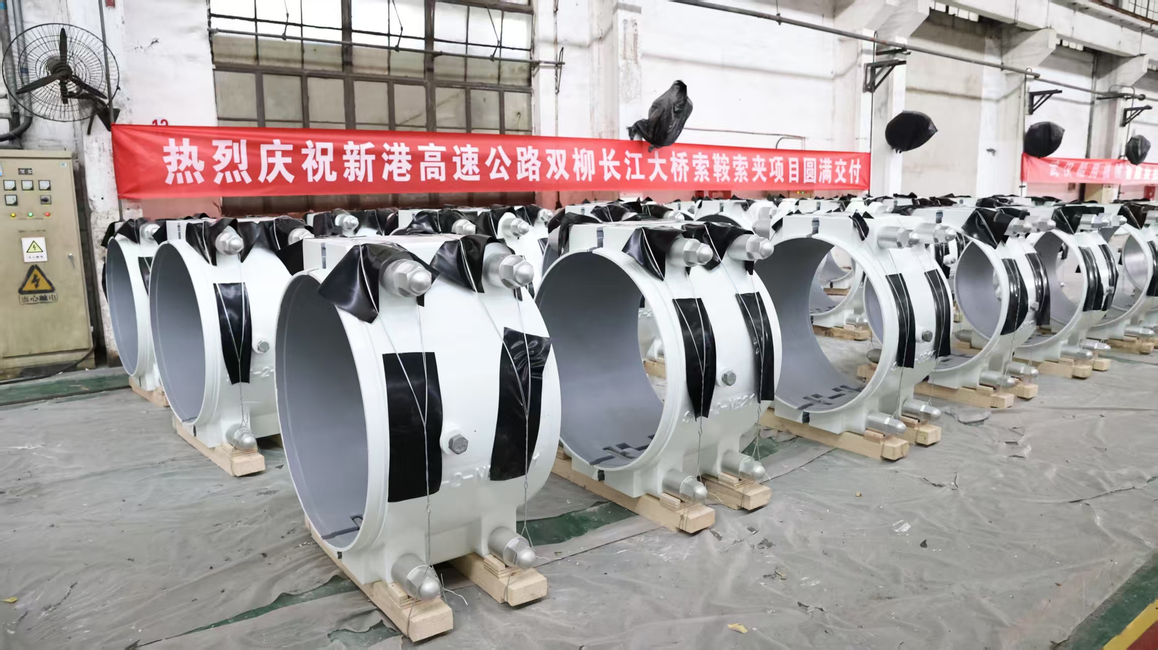日前,中船集團武漢船機承制的新港高速公路雙柳長江大橋最后一批索夾全部發(fā)運。
