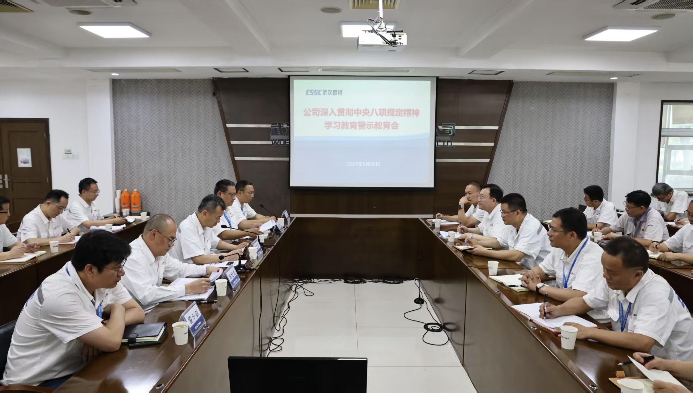 5月30日,中船集團(tuán)武漢船機(jī)黨委召開(kāi)深入貫徹中央八項(xiàng)規(guī)定精神學(xué)習(xí)教育警示教育會(huì)。公司黨委副書(shū)記、總經(jīng)理程立兵主持會(huì)議。公司黨委委員、副總經(jīng)理潘文勝傳達(dá)了習(xí)近平總書(shū)記關(guān)于加強(qiáng)黨的作風(fēng)建設(shè)的重要論述和重要指示批示精神。公司黨委委員、總會(huì)計(jì)師陳世龍通報(bào)了中央層面深入貫徹中央八項(xiàng)規(guī)定精神學(xué)習(xí)教育工作專(zhuān)班、中央紀(jì)委辦公廳公開(kāi)通報(bào)李獻(xiàn)林、葉金廣等人違規(guī)吃喝嚴(yán)重違反中央八項(xiàng)規(guī)定精神問(wèn)題,以及公司違反中央八項(xiàng)規(guī)定精神典型案例。會(huì)議集中觀看了警示教育片。